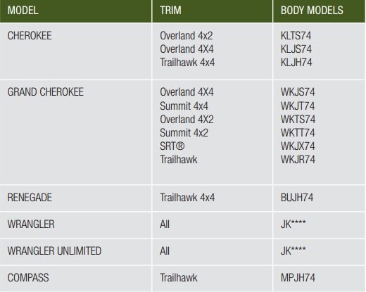 Auto-enrollment: Purchasers of select MY16 and MY17 Jeep Brand models are automatically enrolled in the program at time of purchase, effective at program launch. All Wranglers, Overlands, Trailhawks, Summits and SRTs are included. See list of eligible models below: